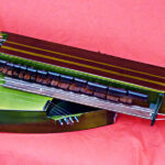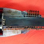 Este modelo de zanfona deseñado neste obradoiro, con modernas liñas, ten unha lonxitude vibratoria de 510mm.